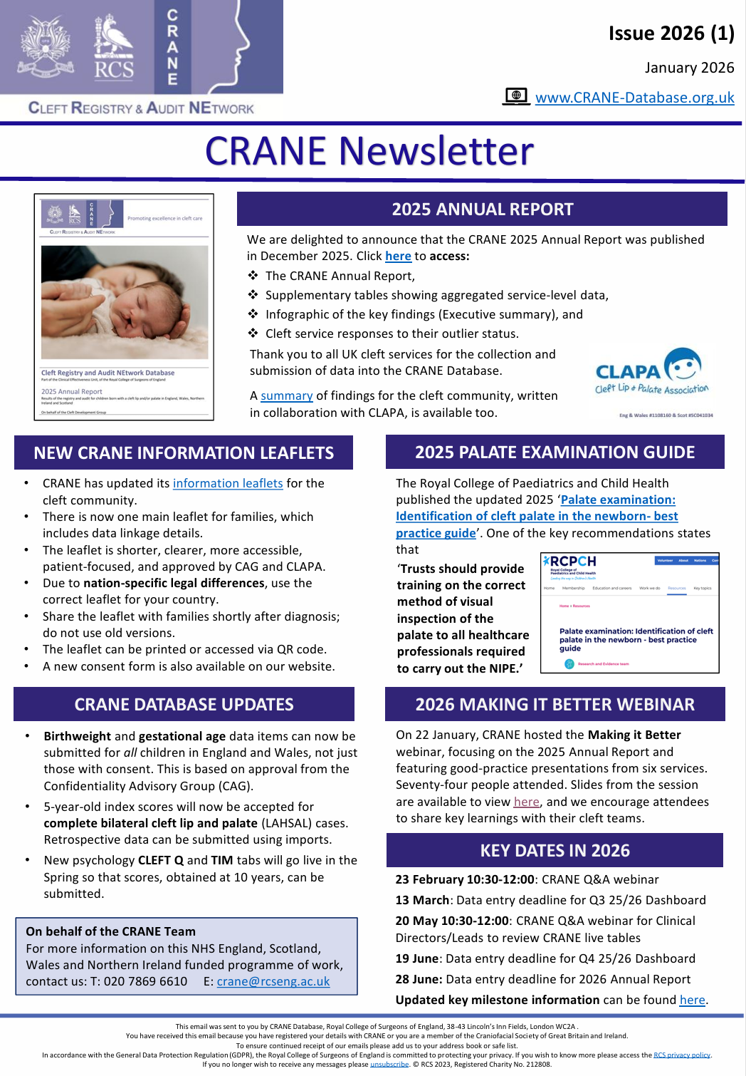 The Cleft Registry and Audit NEtwork (CRANE) Database has published its 2025 Annual Report.